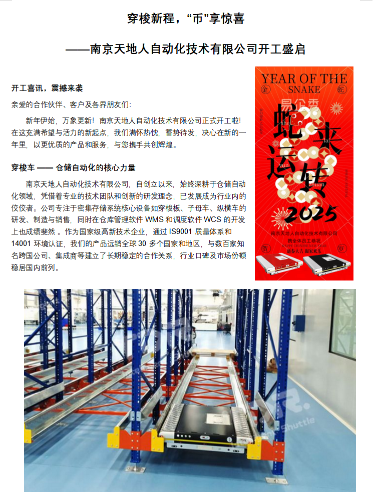 穿梭新程,“幣”享驚喜 ——南京天地人自動化技術有限公司開工盛啟
